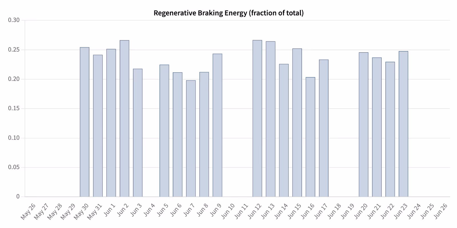 Calculating kWh per mile for EVs requires factoring in regenerative braking and using the net energy total to avoid over-reporting cost per mile. Flipturn Connect uses both energy out and energy fed back into the EV in its reporting features. Our platform also provides visibility into regenerative braking performance across vehicles, helping fleet managers identify ways to improve efficiency, and therefore cost per mile, across an EV fleet.